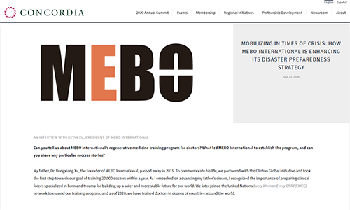 Concordia組織訪談中,徐鵬就美寶國際在世界范圍內(nèi)開展的再生醫(yī)學培訓計劃進行了系統(tǒng)介紹,特別強調(diào)在面對世界問題時,通過與非營利組織、與世界各地政府建立伙伴關(guān)系,應(yīng)對不同國家或地區(qū)的文化和監(jiān)管體系的經(jīng)驗。