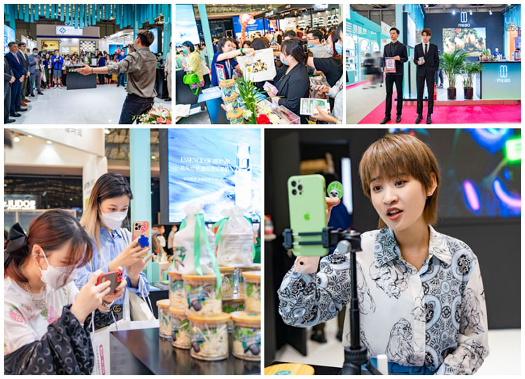 美寶展臺現(xiàn)場活動不斷,精彩紛呈,人流匯聚。不僅ALL IN男團成員、華語樂壇新生代實力派歌手傾情演唱,將氣氛拉到高潮;更有抖音紅人應(yīng)邀來到,和大家現(xiàn)場分享護膚秘籍,并在抖音賬號直播間送出多重福利,引爆流量。