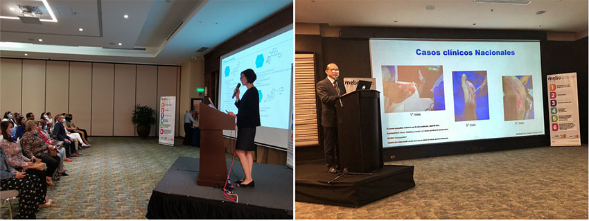 培訓(xùn)的議題主要分為兩大部分:一、再生醫(yī)療技術(shù)的全球發(fā)展,二、再生醫(yī)療技術(shù)在拉美地區(qū)的現(xiàn)階段發(fā)展。培訓(xùn)伊始,首先由國(guó)際再生醫(yī)學(xué)與創(chuàng)面修復(fù)學(xué)會(huì)北京辦公室主任徐巍巍進(jìn)行演講。她首先系統(tǒng)地介紹了再生醫(yī)療技術(shù)的發(fā)展歷史及諸項(xiàng)專利,為參會(huì)者展現(xiàn)出再生醫(yī)療技術(shù)的強(qiáng)大科研背景與科學(xué)實(shí)力。接著,她又著重分析了再生醫(yī)療技術(shù)在提供生理性濕潤(rùn)環(huán)境、緩解疼痛、控制炎癥、預(yù)防感染、改善瘢痕、液化壞死組織及促進(jìn)皮膚原位再生等方面的作用機(jī)制,清晰的梳理了再生醫(yī)療技術(shù)在創(chuàng)面治療領(lǐng)域的巨大優(yōu)勢(shì)。最后,她分享了近年來(lái)在全球開(kāi)展的多項(xiàng)最新臨床研究結(jié)果,以及多個(gè)復(fù)雜病例的分享,直觀地呈現(xiàn)出再生醫(yī)療技術(shù)的顯著治療效果。