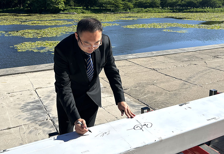 當地時間2024年6月10日,美寶集團董事局主席徐鵬受邀在備受矚目的奧巴馬總統(tǒng)中心施工現場的頂樓橫梁上簽下了自己的名字,這條橫梁將被置放于奧巴馬總統(tǒng)中心的最高點——博物館大樓的“天空屋”內。這是繼奧巴馬總統(tǒng)本人之后,第二位在這座即將崛起的綜合性建筑上留下永恒印記的貢獻者。