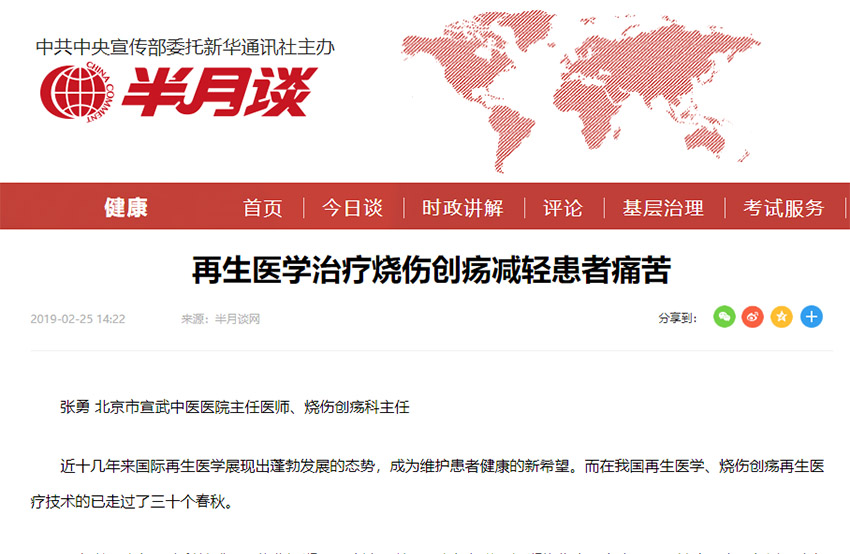“再生醫(yī)學(xué)日”前夕,《半月談》發(fā)表北京宣武中醫(yī)醫(yī)院張勇文章紀(jì)念燒傷創(chuàng)瘍?cè)偕t(yī)療技術(shù)三十周年......