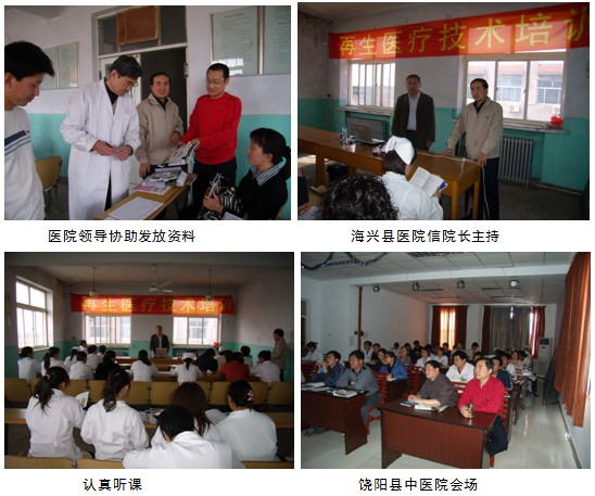 09年新春伊始海興縣人民醫(yī)院與饒陽縣中醫(yī)院的領(lǐng)導(dǎo)和中國中西醫(yī)結(jié)合學(xué)會燒傷專業(yè)委員會河北辦事處便開始共同商討籌備舉辦學(xué)習(xí)班的相關(guān)事宜,2009年4月27日和30日中國中西醫(yī)結(jié)合學(xué)會燒傷專業(yè)委員會常委樊兆宗教授應(yīng)邀分別來到兩家醫(yī)院以“原位再生復(fù)原醫(yī)療技術(shù)在多學(xué)科規(guī)范應(yīng)用”為題,就原位再生復(fù)原醫(yī)療技術(shù)在燒傷、創(chuàng)傷、潰瘍等方面臨床應(yīng)用的范圍、技術(shù)規(guī)范和最新進(jìn)展進(jìn)行了專題學(xué)術(shù)講座。