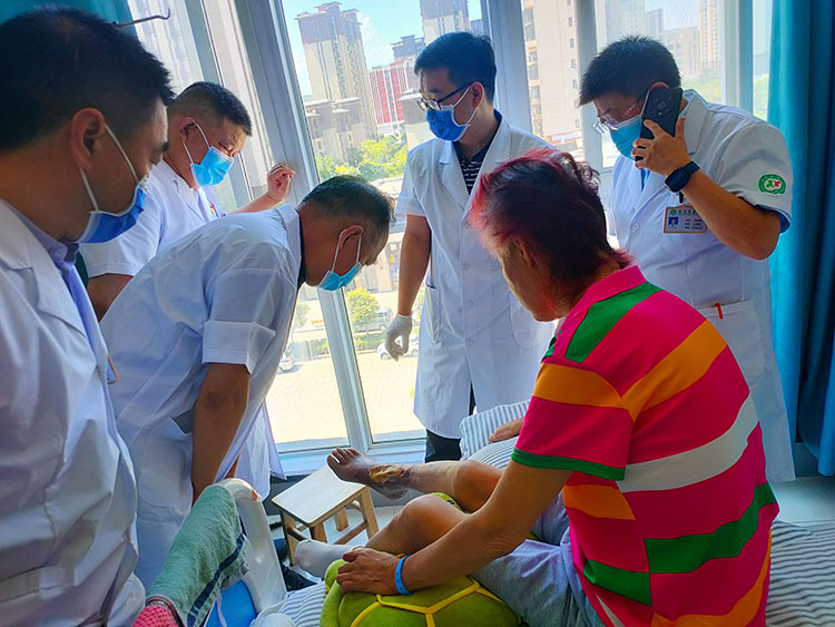 8月9日上午,中國中醫(yī)藥高等教育學(xué)會(huì)臨床教育研究會(huì)肛腸分會(huì)常務(wù)理事、北京中西醫(yī)結(jié)合學(xué)會(huì)燒傷專業(yè)委員會(huì)副主任委員、北京中醫(yī)藥學(xué)會(huì)肛腸專業(yè)委員會(huì)委員、《中國燒傷創(chuàng)瘍雜志》常務(wù)編委張勇,應(yīng)遼寧本溪南地醫(yī)院宋主任的邀請,對一例糖尿病足患者進(jìn)行會(huì)診,并就再生醫(yī)療技術(shù)在多種難愈合創(chuàng)面的臨床應(yīng)用及優(yōu)勢與全科醫(yī)護(hù)人員進(jìn)行了深入交流。