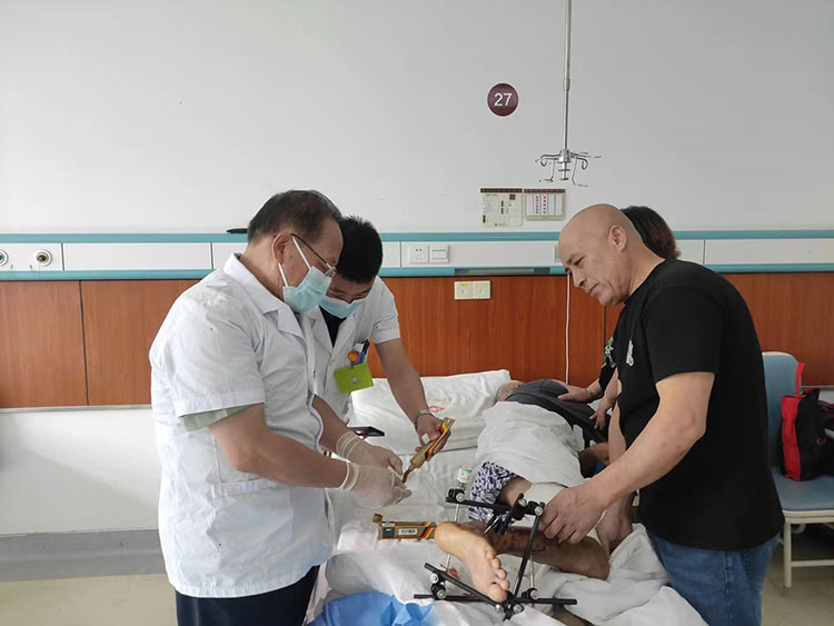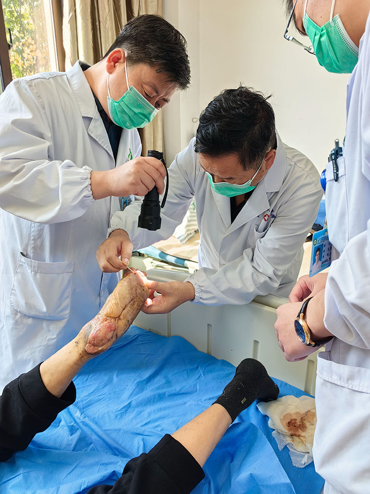 趙瑞慶教授應(yīng)革命老區(qū)河北省平山縣中醫(yī)院之邀,為兩例糖尿病足患者和一例足背部感染患者進行會診。