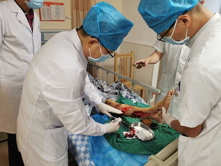 張強教授應(yīng)邀鳳陽縣人民醫(yī)院燒傷創(chuàng)面修復(fù)科,會診多例糖尿病足患者