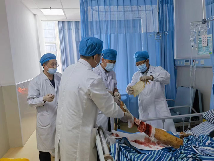 10月25日,《中國燒傷創(chuàng)瘍雜志》編委、燒傷創(chuàng)瘍再生醫(yī)療技術(shù)臨床專家張強教授,應(yīng)桐城市人民醫(yī)院邀請,會診一例右足背燙傷患者,進行再生醫(yī)療技術(shù)規(guī)范換藥示范,與醫(yī)護人員進行交流,受到醫(yī)患雙方高度評價!