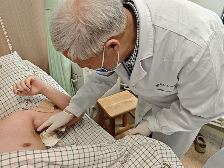 2月7日下午,應(yīng)湖北省孝感市應(yīng)城市中醫(yī)院肛腸科陳培彥主任邀請,《中國燒傷創(chuàng)瘍雜志》編委、燒傷創(chuàng)瘍再生醫(yī)療技術(shù)臨床專家張強(qiáng)主任到該院會診,對一例燙傷患者和一例糖尿病足患者進(jìn)行現(xiàn)場換藥操作,并講解技術(shù)細(xì)節(jié)。此次活動獲得患者及醫(yī)務(wù)人員一致好評,進(jìn)一步推動了該技術(shù)在本院的傳播應(yīng)用。