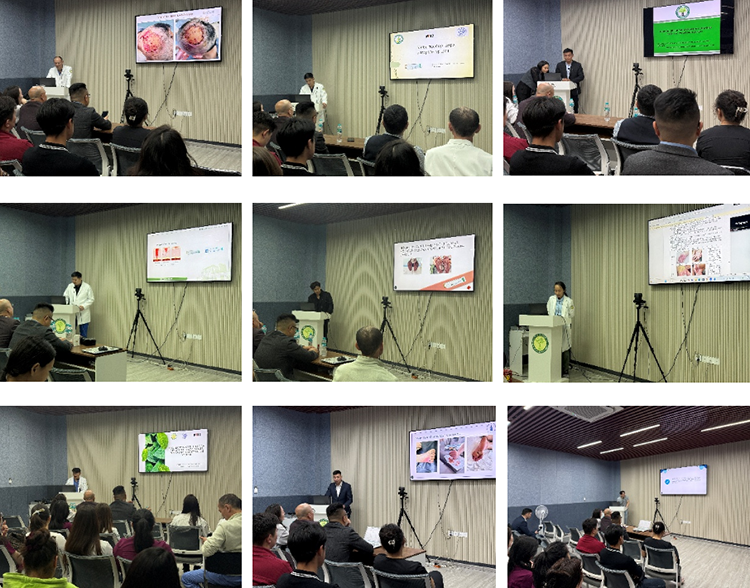 3月23日,美寶國際團隊拜訪擁有百年歷史、蒙古國規(guī)模最大的國家皮膚病中心,為50 余名醫(yī)護開展培訓(xùn)。于教授詳細(xì)講解再生醫(yī)療技術(shù),重點探討其在急慢性創(chuàng)面管理中的創(chuàng)新應(yīng)用,并為年輕醫(yī)生解答臨床問題、提供指導(dǎo)。會后,中心院長烏蘭奇梅格接待團隊,期望深化合作,以再生醫(yī)療技術(shù)造福蒙古國及世界人民。