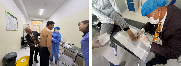 3月24日,美寶國際團隊到訪蒙古國創(chuàng)傷中心,于教授與燒傷科醫(yī)護人員開展再生醫(yī)療技術(shù)臨床學(xué)術(shù)分享。授課結(jié)束后,于教授深入病房為患者進行創(chuàng)面換藥操作,并對醫(yī)護人員開展現(xiàn)場帶教與技術(shù)指導(dǎo)。與會醫(yī)師及科室主任對于教授的蒞臨指導(dǎo)表示感謝,認(rèn)為此次培訓(xùn)為當(dāng)?shù)貎?yōu)化創(chuàng)面治療方案提供了新思路與實踐方向。