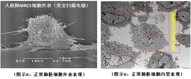 常規(guī)進(jìn)行細(xì)胞培養(yǎng)實(shí)驗(yàn)推動(dòng)細(xì)胞成活,正常的人肺胚細(xì)胞加入再生營(yíng)養(yǎng)物質(zhì)后(詳見圖示8、9),觀察其動(dòng)態(tài)。細(xì)胞內(nèi)線粒體呈圓形或扁豆型等,形態(tài)不一,