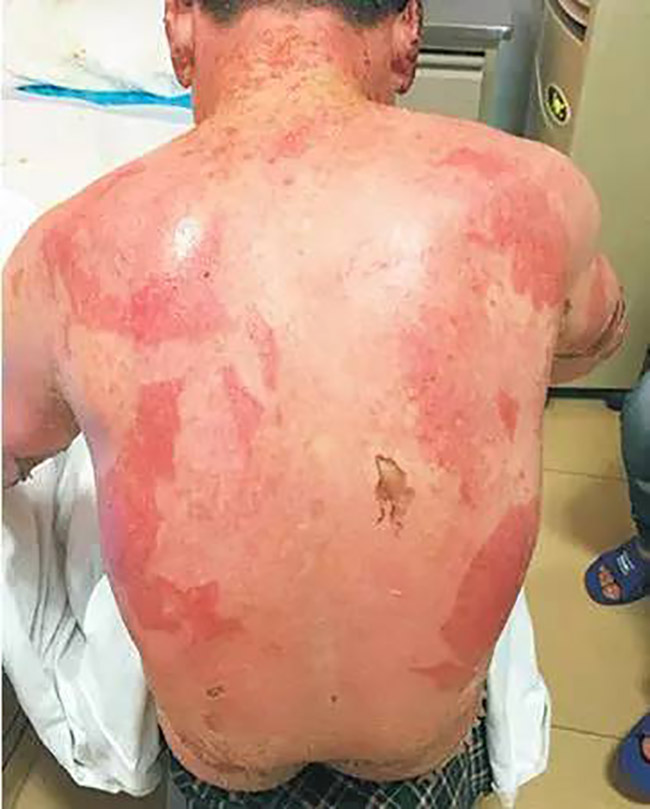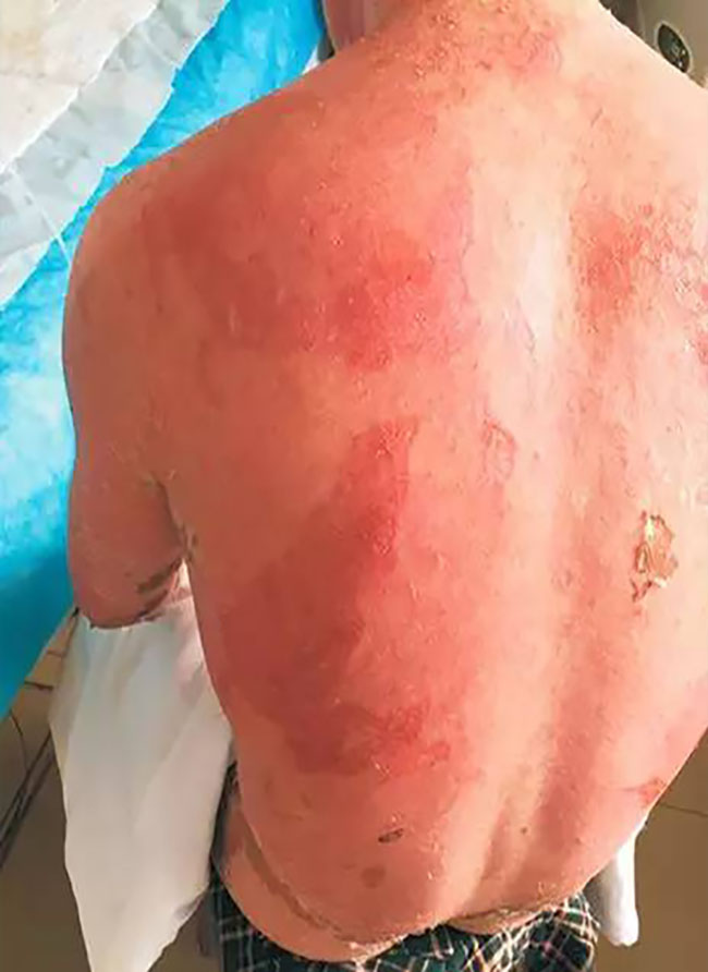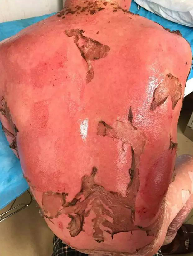 這張照片看起來觸目驚心,這就是一個藥物嚴重過敏的男性患者,年齡38歲。于2016年 8月26起口服卡馬西平抗癲癇治療,服藥后出現(xiàn)頭皮瘙癢,未重視;9月5日患者出現(xiàn)周身皮膚瘙癢,皮膚發(fā)紅,未進行治療,期間繼續(xù)服用卡馬西平;9月6日,上述癥狀加重,發(fā)紅處出現(xiàn)水皰;9月8日19:30患者入院治療。以“藥物過敏致全身大面積剝脫性皮炎”收入重癥監(jiān)護室,該患者皮疹多種形態(tài),可見斑疹、斑丘疹、斑片,自覺瘙癢,可見水皰及皮膚破潰,口腔黏膜破潰。最初他只是以為是蕁麻疹卻未想到,是他治療癲癇的口服藥造成的藥物性過敏,而且來勢洶洶。