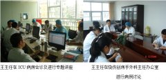 在ICU病房會診培訓技術(shù)后,王主任又應(yīng)邀并在該醫(yī)院燒傷創(chuàng)瘍手外科負責人及該科全體醫(yī)護人員陪同下,又深入該醫(yī)院燒傷創(chuàng)瘍手外科病區(qū)為第2例燒傷總面積達70%的大面積燒傷會診,會診結(jié)束后,王主任在該科主任辦公室又與該科全體醫(yī)生就該例大面積燒傷患者的救治進行了討論,并制定詳細的治療方案。