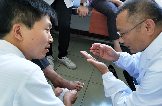 7月21日至23日,應(yīng)文水縣人民醫(yī)院的邀請,中國中西醫(yī)結(jié)合學(xué)會燒傷專業(yè)委員會專家趙瑞慶,來到劉胡蘭的家鄉(xiāng),深入外科、腎內(nèi)科會診多例嚴重糖尿病足及慢性潰瘍創(chuàng)面病人,通過在手術(shù)室對醫(yī)生的言傳身教,使大家對相關(guān)病例的處理水平有了進一步提高,手術(shù)后開展了多科室人員的再生醫(yī)療技術(shù)培訓(xùn),受到院領(lǐng)導(dǎo)及腎內(nèi)科、外科、骨科主任的充分肯定,此次活動推動了再生醫(yī)療技術(shù)在文水縣醫(yī)療集團的廣泛應(yīng)用。