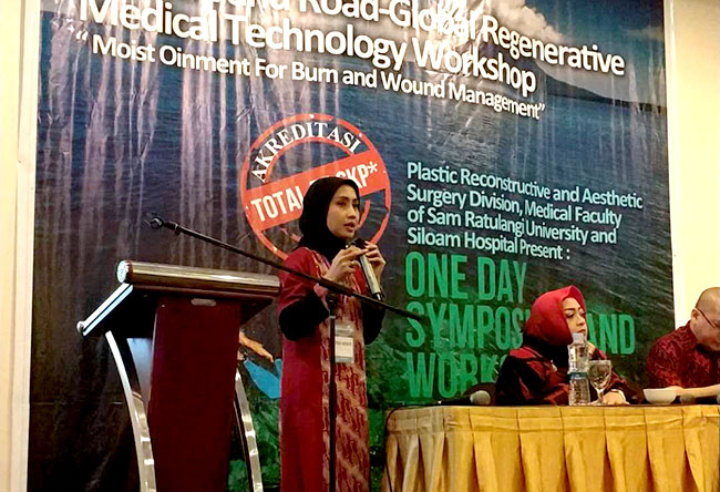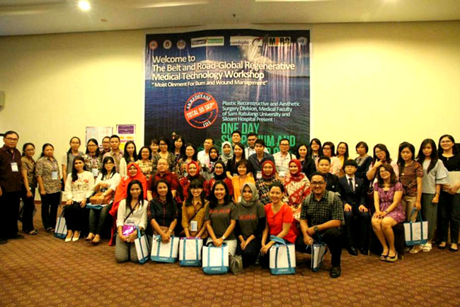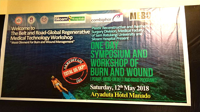 5月12日,由美寶和Combiphar主辦的第一期大型再生醫(yī)學培訓班在印度尼西亞美娜多市成功舉辦。來自雅加達Koja整形醫(yī)院、Pelni/Rawamangun/Poli等醫(yī)院燒傷創(chuàng)瘍科、兒童醫(yī)院、武警醫(yī)院的8名再生醫(yī)學專家和美娜多當?shù)豐iloam醫(yī)院、周邊地區(qū)社區(qū)醫(yī)院、當?shù)孛襟w等共255人參加了本次活動,詳細報道如下: