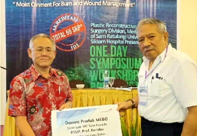 會后,由Combiphar公司總裁 Mr. Wong代表美寶國際向Siloam醫(yī)院捐贈了100支燒傷膏,旨在讓當?shù)刎毨Щ颊咭材芟硎艿皆偕t(yī)學的成果。
