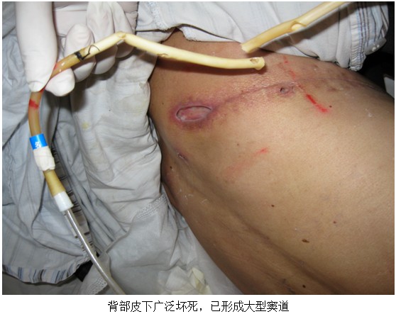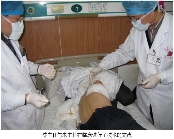 2013年元月15日,三門(mén)峽市黃河醫(yī)院外科朱凱主任邀請(qǐng)中國(guó)中西醫(yī)結(jié)合學(xué)會(huì)燒傷專(zhuān)業(yè)委員會(huì)委員、北京美寶燒傷創(chuàng)瘍研究所臨床部主任陳全喜來(lái)到黃河醫(yī)院外科會(huì)診右側(cè)背部肋下廣泛肌肉壞死(已在外省治療9個(gè)月,因連續(xù)發(fā)熱不退,轉(zhuǎn)黃河醫(yī)院外科)的高齡危癥病人。