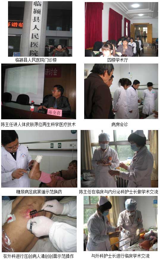 2012年2月14日,中國中西醫(yī)結(jié)合學(xué)會燒傷專業(yè)委員會委員、北京美寶燒傷創(chuàng)瘍研究所臨床部主任陳全喜,受臨穎縣人民醫(yī)院內(nèi)分泌科主任鄭玉、普外主任王志高的邀請,到臨穎縣人民醫(yī)院對兩科室醫(yī)護(hù)人員進(jìn)行“人體再生復(fù)原科學(xué)皮膚原位再生”醫(yī)療技術(shù)培訓(xùn)。