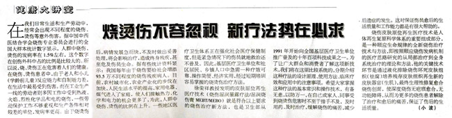 徐榮祥教授發(fā)明的皮膚原位再生醫(yī)療技術(shù)(燒傷濕潤暴露療法/濕潤燒傷膏MEBT/MEBO)就是符合以上要求的燒傷治療新方法,也是衛(wèi)生部從1991年開始向全國基層醫(yī)療衛(wèi)生單位推廣普及的十年百項(xiàng)科技成果之一。為了讓廣大群眾和消費(fèi)者了解這項(xiàng)新技術(shù),我們將在這里比較系統(tǒng)的,分期介紹這種療法的設(shè)計(jì)原理、使用方法、臨床療效和應(yīng)用中的注意事項(xiàng)。希望大家掌握這種療法的基本常識(shí)和操作技術(shù),有備無患,以防萬一,在自己或家人、同事受到燒燙傷危害時(shí)不至于措手不及,及時(shí)用藥、及時(shí)治療,緩解燒傷的痛苦,減少后遺癥的發(fā)生。這對(duì)保證傷員愈后的生活質(zhì)量和工作能力都是有很大幫助的。
