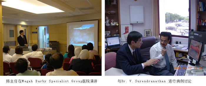 2009年4月17日中午,我們應(yīng)邀來到了Petaling Jaya 市的Megah Darby Specialist Group醫(yī)院,這是一家民營的集團(tuán)醫(yī)院,是以整形、美容和燒傷為主要業(yè)務(wù)的綜合醫(yī)院。學(xué)術(shù)活動安排在下午的1時開始,有40余名醫(yī)師和護(hù)士參加學(xué)術(shù)會議,陳永翀主任以“The Application of Skin Regenerative Therapy on Burns, Traumas, Ulcers and Dermatosis”為題進(jìn)行學(xué)術(shù)報告,陳主任將演講內(nèi)容分為再生技術(shù)在燒傷、創(chuàng)傷、潰瘍和皮膚病的臨床治療四部分,向大家生動地介紹了再生醫(yī)學(xué)技術(shù)的特點、優(yōu)勢和臨床應(yīng)用所取得的優(yōu)越效果,大家在看完了眾多的臨床病例圖片展示后都感到非常的震驚,在交流期間,臨床醫(yī)師和護(hù)士們非常踴躍的提出了他們感興趣和感到疑惑的問題,陳主任則認(rèn)真地給予解答,學(xué)術(shù)交流的氛圍非常熱烈,大家都期望能夠早日將再生技術(shù)在醫(yī)院引進(jìn)應(yīng)用。期間,陳主任還與該院的燒傷整形美容中心的主任Dr. V. Surendranathan進(jìn)行了更深入的交流和病例討論,Dr. V. Surendranathan熱情邀請陳主任參加明天在吉隆坡召開的馬來西亞燒傷整形外科會議。