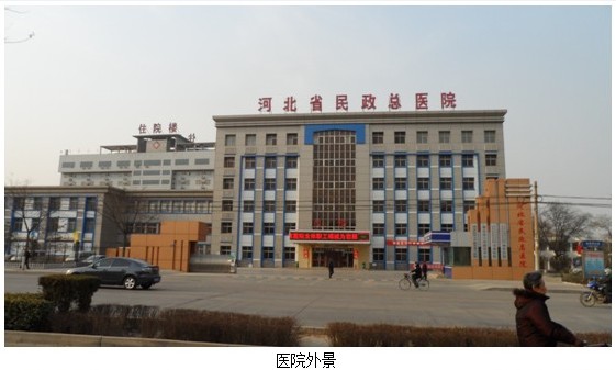 河北省民政總醫(yī)院是由原河北省復(fù)員軍人醫(yī)院和河北省榮譽(yù)軍人康復(fù)醫(yī)院整合而成。醫(yī)院技術(shù)力量雄厚、專業(yè)科室齊全、醫(yī)療設(shè)備先進(jìn),是集醫(yī)療、科研、教學(xué)、預(yù)防保健和康復(fù)醫(yī)療于一體的現(xiàn)代化綜合醫(yī)院。醫(yī)院坐落于邢臺(tái)市區(qū)西北(橋西區(qū)泉南西大街293號(hào)),環(huán)境優(yōu)美、交通便利、醫(yī)療建筑面積近4萬(wàn)平方米,有急診樓、門診樓、醫(yī)技樓、康復(fù)樓、住院樓、頤康樓及其他配備設(shè)施。編制床位800張。現(xiàn)有職工700余人,其中高級(jí)職稱124人,中級(jí)職稱161人。