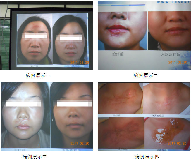研討會(huì)首先由譚主任詳細(xì)系統(tǒng)的介紹了應(yīng)用皮膚原位再生復(fù)原技術(shù)對(duì)疤痕以及其它表皮缺損激光治療后的創(chuàng)面進(jìn)行修復(fù)的理論依據(jù)。隨后向與會(huì)領(lǐng)導(dǎo)展示了他們團(tuán)隊(duì)治療的若干實(shí)例,對(duì)每一幅照片的病例,譚主任都如數(shù)家珍,治療效果對(duì)比非常強(qiáng)烈。