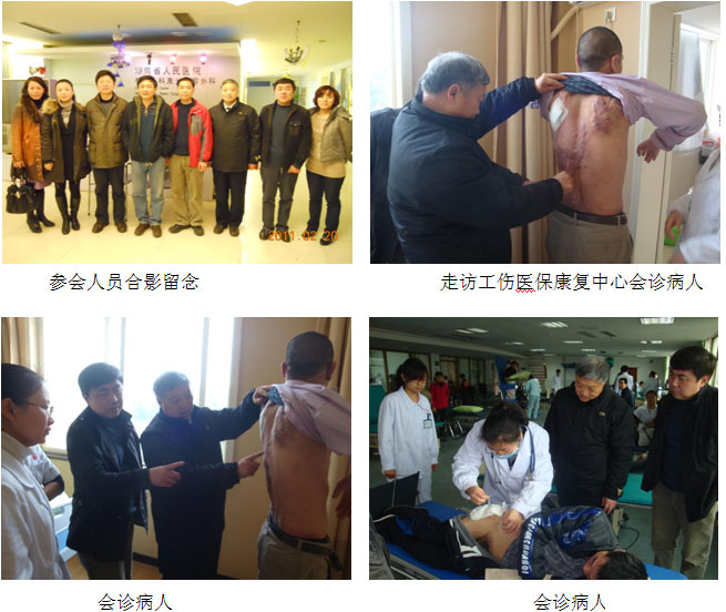 參加人員有湖南省勞動(dòng)廳工傷醫(yī)保局周鵬翔處長(zhǎng)、姚燦科長(zhǎng)、中南大學(xué)公共衛(wèi)生學(xué)院院長(zhǎng)助理劉輝霞博士、湖南省人民醫(yī)院副院長(zhǎng)向華、中國(guó)中西醫(yī)結(jié)合學(xué)會(huì)燒傷專業(yè)委員會(huì)臨床部金黨軍主任、湖南辦汪波、侯效東以及該院燒傷科的骨干醫(yī)生譚軍主任、李高峰副主任、丁衛(wèi)等。