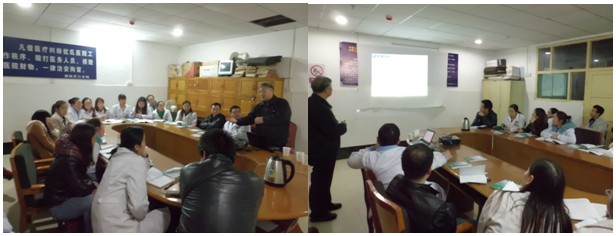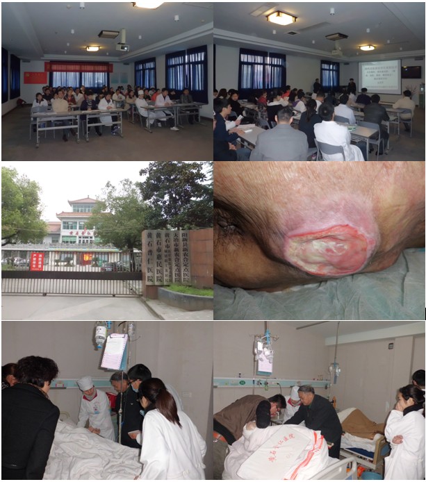2013年3月20日下午,金教授馬不停蹄前往黃石市另一家醫(yī)院普仁醫(yī)院做了題為《燒傷皮膚原位再生醫(yī)療技術臨床應用規(guī)范》的專題講座,講座在醫(yī)務科張科長的主持下進行,醫(yī)院各科室的醫(yī)護人員齊聚會場,金教授在講座中結合了大量的臨床病例圖片及錄像資料,主要針對各類難愈性創(chuàng)傷、潰瘍創(chuàng)面、糖尿病足、放射性潰瘍的規(guī)范化處理方法與技巧、注意事項等進行了細致地講解,強調(diào)創(chuàng)面處理要大膽清創(chuàng)、減壓、去除壞死組織,并保持創(chuàng)面生理的濕潤環(huán)境,實現(xiàn)創(chuàng)面的再生復原,并建議對病人深達真皮層以下愈合后創(chuàng)面應進行防疤處理治療。講座結束后,金老師又應神經(jīng)內(nèi)科胡艷護士長的邀請對醫(yī)院的幾位褥瘡患者進行了會診及換藥示范,張科長和胡護士長都表示通過此次的講座與示范,令大家受益匪淺。
