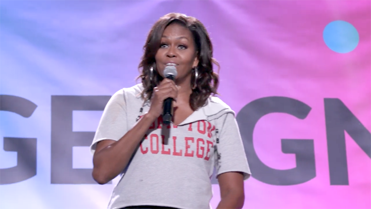 米歇爾· 奧巴馬在加大洛杉磯分校舉行的大學定校日活動激勵中學生上大學