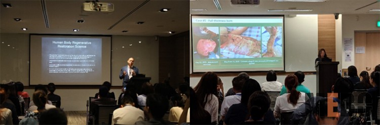 8月16日中午,ISRMWR在新加坡中央醫(yī)院Academia學(xué)術(shù)報(bào)告廳White Space分會(huì)場(chǎng)再一次舉辦了再生醫(yī)學(xué)專場(chǎng)。本次專場(chǎng),特別邀請(qǐng)到中山大學(xué)附屬第一醫(yī)院燒傷外科劉旭盛主任作為會(huì)議主持,分別有來(lái)自中國(guó)、印尼和馬來(lái)西亞的4位再生醫(yī)學(xué)專家?guī)?lái)了精彩演講。來(lái)自印尼雅加達(dá) Rawamangun醫(yī)院的Donna Savitry醫(yī)生,她是印尼整形外科學(xué)會(huì)副秘書長(zhǎng),已有近10年的再生醫(yī)療經(jīng)驗(yàn)。她帶來(lái)的題目是“Strategy to Use MEBO Effectively in Low Budget Burn Patient: An Observation in Daily Practice“。在演講中,她分享了其多年的治療經(jīng)驗(yàn)和多個(gè)精彩病例,量化藥量使用評(píng)估讓人耳目一新。韶關(guān)市第一人民醫(yī)院燒傷科的陳錚主任,他的演講題目是“Treating Generalized Skin Diseases with MEBO”。他分享了數(shù)例藥物導(dǎo)致大皰表皮松解癥的嚴(yán)重病例,患者病情之嚴(yán)重,治療效果之顯著,令與會(huì)者贊嘆不已。來(lái)自馬來(lái)西亞?wèn)|海岸線的Mohd Zurairie醫(yī)生,今年5月到中國(guó)長(zhǎng)沙開展過(guò)學(xué)術(shù)交流,他的演講題為“Exudates Management and Cell Regenerative in Chronic Wound Lessening Healing Time”。Zurairie醫(yī)生應(yīng)用再生醫(yī)療技術(shù)時(shí)間不長(zhǎng),在演講上,他和與會(huì)者客觀地分享了他的學(xué)習(xí)和探索體會(huì)。北京南苑醫(yī)院燒傷創(chuàng)瘍中心的陳永翀主任分享的內(nèi)容為“The New Application of Burns Regenerative Medicine Therapy in Malignant Ulcers Treatment”。在演講中,他展示了再生醫(yī)療技術(shù)在治療惡性潰瘍中的卓越效果,并呼吁與會(huì)專家共同研究探索燒傷再生醫(yī)療技術(shù)在這一領(lǐng)域的更深層次應(yīng)用可行性。