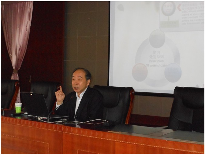 密云醫(yī)學會主持了此次學術活動,并做了周密安排。應醫(yī)學會邀請,中國中西醫(yī)結合學會燒傷專業(yè)委員會主任委員肖摩教授進行再生醫(yī)療技術的培訓。參加培訓的醫(yī)務人員近260人,由于參加培訓人員比預計的要多,加上大家的學習熱情高漲,站在會場后面聽課的學員有三、四排之多,但是教室內秩序良好,學員們聚精會神。