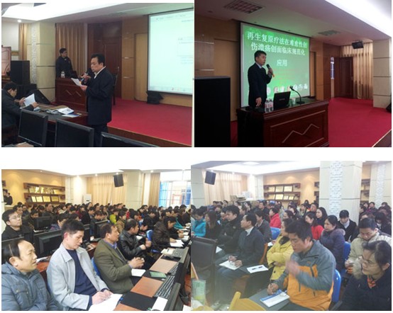當(dāng)日下午15時(shí),南寧第七人民醫(yī)院門(mén)診綜合樓5樓會(huì)議室座無(wú)虛席,全院各科室除值班醫(yī)護(hù)人員外,共有100多人到會(huì)聆聽(tīng)王主任的專(zhuān)題講座,該院業(yè)務(wù)副院長(zhǎng)黃恒良全程主持了學(xué)術(shù)講座,會(huì)議中,王主任首先向與會(huì)的專(zhuān)家介紹了著名生命科學(xué)家、醫(yī)學(xué)家、人體再生復(fù)原科學(xué)的創(chuàng)立者、再生復(fù)原療法的發(fā)明人徐榮祥教授近年來(lái)在再生醫(yī)學(xué)領(lǐng)域所取得的重大實(shí)驗(yàn)及臨床研究成果,而后王主任結(jié)合大量的臨床病例圖片及錄像資料,主要針對(duì)各類(lèi)難愈性創(chuàng)傷、潰瘍創(chuàng)面的規(guī)范化處理方法與技巧、注意事項(xiàng)等進(jìn)行了細(xì)致地講解,活動(dòng)持續(xù)到下午17時(shí)才結(jié)束。
