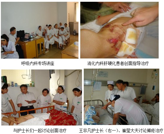 2009年8月6日下午三時(shí),在該院外科大樓六樓教育報(bào)告廳,中國(guó)中西醫(yī)結(jié)合學(xué)會(huì)燒傷專(zhuān)業(yè)委員會(huì)委員金黨軍教授應(yīng)邀為傷口護(hù)理小組成員及多科室護(hù)理人員進(jìn)行了再生醫(yī)療技術(shù)在燒傷,創(chuàng)傷創(chuàng)面治療中的應(yīng)用培訓(xùn)。金教授從再生醫(yī)學(xué)理論和濕性醫(yī)療技術(shù),燒傷原理講解了燒傷皮膚再生醫(yī)療技術(shù)(速愈貼)在創(chuàng)傷,潰瘍,電擊傷等臨床應(yīng)用,并展示大量豐富的圖片,由淺到深,深入人心。講解結(jié)束后,金教授又到消化內(nèi)科為一七十多歲老年患者會(huì)診,該患者有肝硬化和低蛋白血糖癥,全身有大面積創(chuàng)傷,滲液特別多,潘群護(hù)士長(zhǎng)就如何處理滲液和不易祛除的痂皮與金教授做了交流,金教授將處理方法和正確使用速愈貼向護(hù)理人員作了解答,得到認(rèn)可,并表示會(huì)規(guī)范操作;內(nèi)分泌科一糖尿病足患者深度創(chuàng)面如何用濕潤(rùn)燒傷膏制作油紗條填充,再用速愈貼覆蓋。呼吸內(nèi)科的牟護(hù)士長(zhǎng)特邀請(qǐng)金教授到該科室就褥瘡及潰瘍創(chuàng)面治療又做了一次精彩豐富的講座。