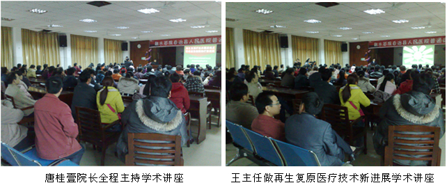 當日下午15時,融水縣苗族自治縣人民醫(yī)院門診綜合樓4樓會議室座無虛席,全院各科室除值班醫(yī)護人員外,共有150多人到會聆聽王主任的專題講座,院長唐桂壹全程聆聽并主持了學術講座。會議中,王主任結合了大量的臨床病例圖片,主要針對再生復原醫(yī)療技術在糖尿病足及各類難愈性創(chuàng)傷、潰瘍創(chuàng)面的規(guī)范化處理方法與技巧、注意事項等進行了細致地講解,活動持續(xù)到下午17時才結束。
