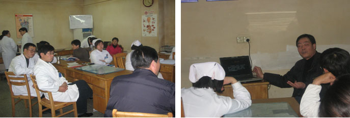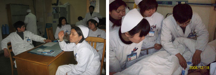 醫(yī)護(hù)人員認(rèn)真討論臨床常見的問題                                   徐建華主任在查房檢查創(chuàng)瘍患者