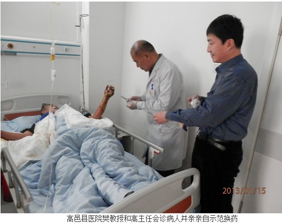 中國中西醫(yī)結(jié)合學(xué)會燒傷專業(yè)委員會,北京燒傷創(chuàng)瘍研究所臨床部主任樊兆宗教授,于2013年1月15日-17日分別在石家莊高邑縣醫(yī)院和保定順平縣醫(yī)院進行再生醫(yī)療技術(shù)的授課講座。