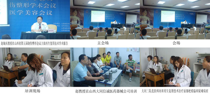 北京燒傷創(chuàng)瘍研究所副所長趙瑞慶教授于5月27日在山西省燒傷整形學(xué)術(shù)會議做再生復(fù)原技術(shù)講座,受到中外專家學(xué)者的一致好評。28日至30日分別在大同信誠醫(yī)藥器械公司、大同市二院皮膚科進(jìn)行再生復(fù)原技術(shù)培訓(xùn)。