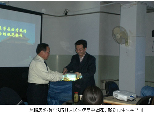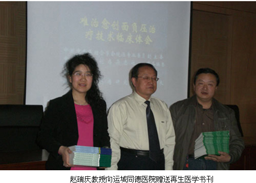 另外,趙瑞慶教授先后在沒(méi)有應(yīng)用過(guò)原位再生醫(yī)療技術(shù)的永濟(jì)市人民醫(yī)院、聞喜縣創(chuàng)傷醫(yī)院、運(yùn)城皮膚病醫(yī)院、運(yùn)城市同德糖尿病醫(yī)院進(jìn)行了再生醫(yī)療技術(shù)的臨床應(yīng)用培訓(xùn)共八期,培訓(xùn)人員達(dá)394人,贈(zèng)送再生醫(yī)學(xué)資料達(dá)400余冊(cè),受到了當(dāng)?shù)匦l(wèi)生局領(lǐng)導(dǎo)、縣醫(yī)院的高度稱贊。