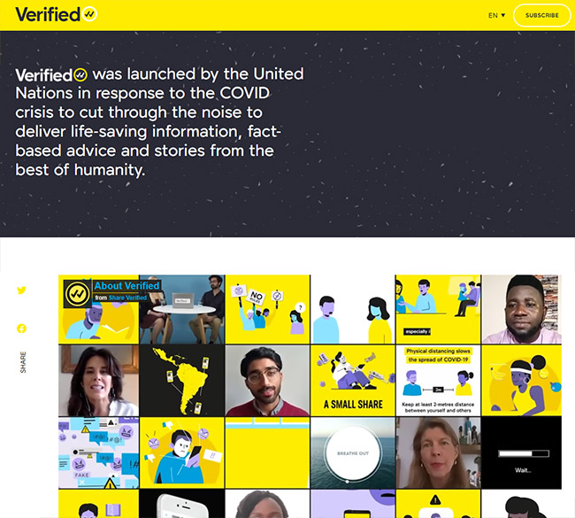 VERIFIED平臺是聯(lián)合國為應(yīng)對新冠肺炎疫情而發(fā)起,旨在改善獲得準(zhǔn)確信息的途徑。聯(lián)合國試圖組織一個由數(shù)百萬在線志愿者組成的網(wǎng)絡(luò),在龐雜的信息中提供有關(guān)新冠疫情的科學(xué)信息,并分享真實而美好的抗疫故事。