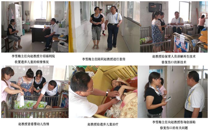 簡報一:9月1日,應(yīng)菏澤市福利院的邀請,趙教授帶著再生醫(yī)學(xué)創(chuàng)面修復(fù)的新技術(shù)走進福利院。在兒童部李雪梅主任的陪同下,給福利院保育人員講解預(yù)防褥瘡創(chuàng)面修復(fù)的新知識,為遺棄兒童免費進行醫(yī)療服務(wù)。
