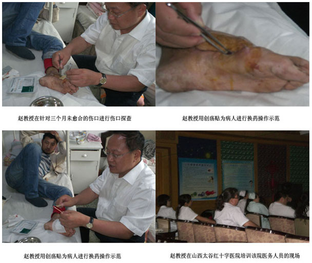 簡報二:9月4日,趙教授在山西太谷紅十字正骨醫(yī)院培訓(xùn)該院醫(yī)務(wù)人員加強再生醫(yī)學(xué)技術(shù)在多學(xué)科的臨床應(yīng)用。培訓(xùn)結(jié)束后,到病房查房指導(dǎo),處理了三個月未愈合的傷口。