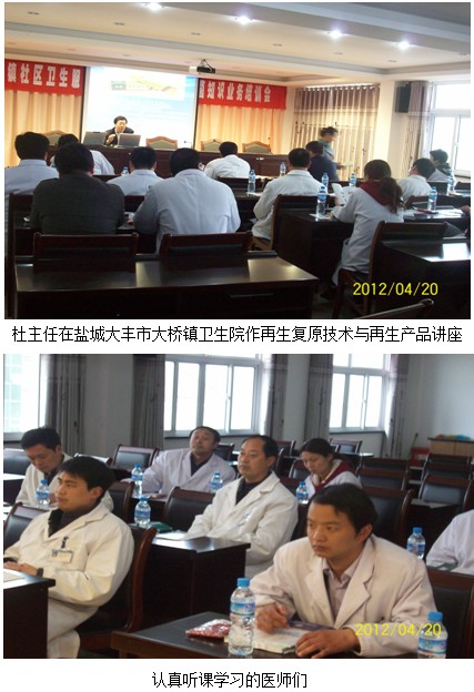 2012年4月20日中國中西醫(yī)結(jié)合學(xué)會(huì)燒傷專業(yè)委員會(huì)委員、北京美寶燒傷創(chuàng)瘍研究所臨床部主任、燒傷創(chuàng)瘍專家杜福勤與江蘇省區(qū)劉恒主任驅(qū)車100余公里從姜堰趕赴鹽城大豐市大橋鎮(zhèn)衛(wèi)生院,舉辦再生復(fù)原技術(shù)學(xué)術(shù)講座,杜主任以“皮膚原位再生復(fù)原技術(shù)與再生產(chǎn)品”為題為大豐市大橋鎮(zhèn)衛(wèi)生院全體職工舉辦了再生復(fù)原技術(shù)講座,該醫(yī)院楊院長參加了再生復(fù)原技術(shù)講座學(xué)習(xí),杜主任通俗易懂的進(jìn)行了演講,講解了再生復(fù)原技術(shù)的基礎(chǔ)理論和美寶創(chuàng)瘍貼與美寶疤痕軟膏的臨床應(yīng)用方法、臨床功能、臨床療效及愈后效果。介紹了美寶創(chuàng)瘍貼的產(chǎn)品特點(diǎn);臨床注意事項(xiàng)和不良反應(yīng)。深受參加學(xué)習(xí)的醫(yī)護(hù)人員歡迎,為深入基層推廣奠定了良好基礎(chǔ),達(dá)到了基層醫(yī)療單位深入推廣地目的。