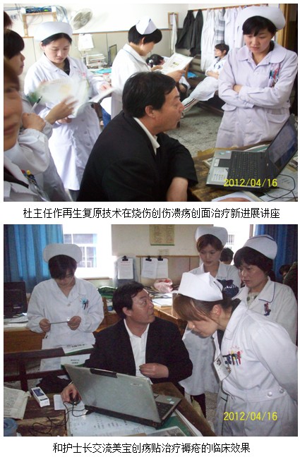 2012年4月16日中國(guó)中西醫(yī)結(jié)合學(xué)會(huì)燒傷專業(yè)委員會(huì)委員、北京美寶燒傷創(chuàng)瘍研究所臨床部研究員、燒傷創(chuàng)瘍專家杜福勤主任和駐黃山市陳義勝同志為歙縣人民醫(yī)院外科、骨科醫(yī)護(hù)人員作再生復(fù)原技術(shù)講座,受到參加學(xué)習(xí)的醫(yī)護(hù)人員歡迎,達(dá)到了推廣再生復(fù)原技術(shù)地目的。