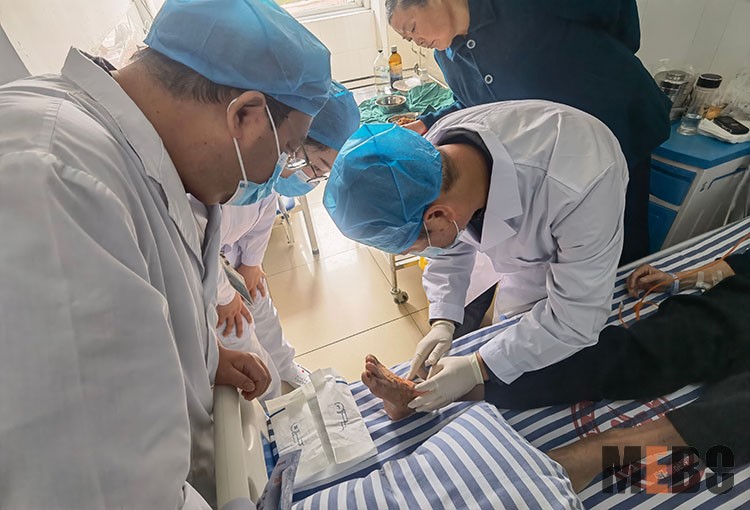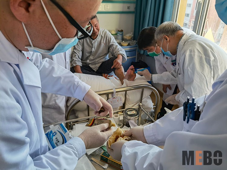 2021年10月21日,中國中西醫(yī)結合學會燒傷專業(yè)委員會醫(yī)療部張強主任應邀前往宣城市骨科醫(yī)院手足顯微外科,在科室盈主任、護士長陪同下,對一例腿部潰瘍伴皮膚缺損患者進行會診,張主任親自示范再生醫(yī)療技術臨床規(guī)范換藥操作和臨床指導,受到患者家屬和醫(yī)護人員高度贊賞。