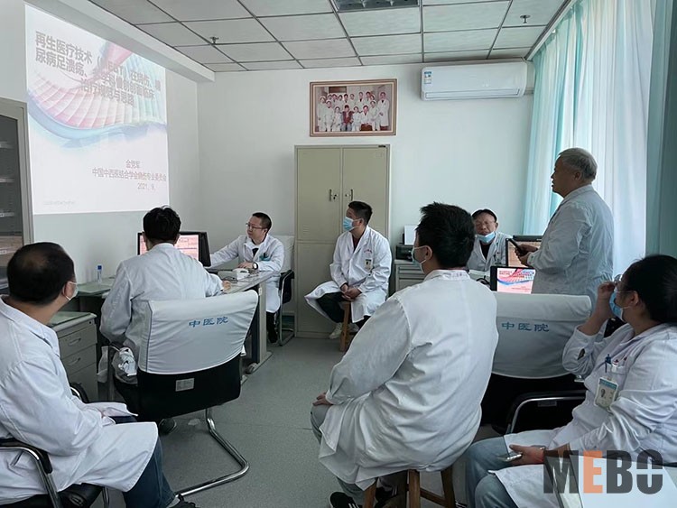 2021年10月18日,北京榮祥再生醫(yī)學研究所副所長、《中國燒傷創(chuàng)瘍雜志》編委金黨軍應邀來到丹東中醫(yī)院創(chuàng)面修復科,就科室燒傷創(chuàng)面患者治療情況以及創(chuàng)面修復??瓢l(fā)展進行了詳細的探討,他分享了再生醫(yī)療技術臨床應用規(guī)范,受到醫(yī)護人員的支持和好評。