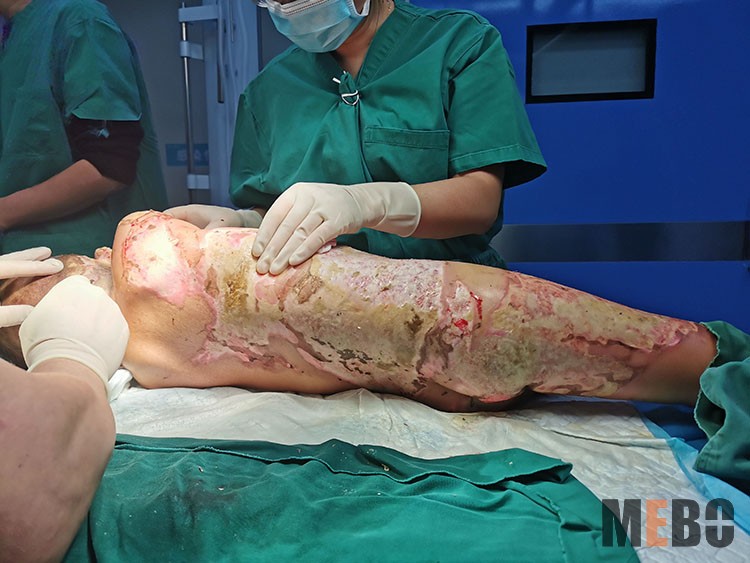 2021年10月21日,貴陽市第五人民醫(yī)院董建軍主任應黔西林東醫(yī)院的邀請,到該院會診一小兒大面積重度燒傷病人,并進行清創(chuàng)治療,另對一大面積燒傷病人殘余創(chuàng)面進行微粒皮種植術,并指導手術醫(yī)生取皮,制皮,種植。