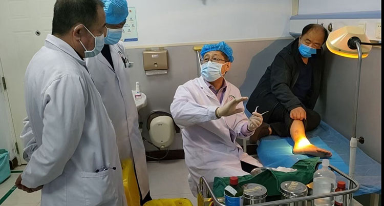 2月13日, 北京榮祥再生醫(yī)學研究所副所長、中國中西醫(yī)結合學會燒傷專業(yè)委員會常務委員、《中國燒傷創(chuàng)瘍雜志》副總編輯、應用燒傷創(chuàng)瘍再生醫(yī)療技術治療糖尿病足領域專家王洪生主任受邀前往山東省淄博市高青縣人民醫(yī)院,與創(chuàng)傷中心劉主任及其團隊開展再生醫(yī)療技術在壓力性損傷的療效機理與處理要點專題講座,并結合住院病例進行了現(xiàn)場教學,受到大家一致好評。