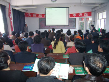 經(jīng)過近幾年來的推廣普及維護,張家口市區(qū)縣內(nèi)各級醫(yī)療單位,不同程度的應用著燒傷皮膚原位再生醫(yī)療技術(shù),從而滿足了部分燒傷患者的就醫(yī)需求,解決了醫(yī)生在治療患者中遇到的難題。張家口是一個地域遼闊、人群居住分散、交通欠發(fā)達的地區(qū),燒傷皮膚原位再生醫(yī)療技術(shù)推廣起來有一定的難度。今年春季以來 ,張家口市衛(wèi)生局科教科在熟知該項技術(shù)是“國家十年百項科技成果”且已被國家列為“星火計劃”推廣項目之后,為了更大范圍、更加深入的向基層推廣,更好的讓醫(yī)務人員解決基層燒傷創(chuàng)瘍患者的痛苦,對燒傷皮膚原位再生醫(yī)療技術(shù)的推廣給予了高度重視,并以書面文件要求各縣級衛(wèi)生局給予支持。中國中西醫(yī)結(jié)合學會燒傷專業(yè)委員會于四月二十三和二十五日,分別在涿鹿縣和陽原縣,舉辦了由縣內(nèi)各級醫(yī)療單位相關(guān)科室醫(yī)務人員參加的培訓班,兩個班的聽課人數(shù)分別為135人和105人。在培訓班上,由醫(yī)療部樊兆宗主任,重點講解了燒傷皮膚原位再生醫(yī)療技術(shù)的規(guī)范應用,以及再生療法在多學科的應用和進展。大家對講座非常感興趣,學習熱情很高,會后又進行了互動和交流,加強了縣級醫(yī)院和鄉(xiāng)村醫(yī)生的合作,起到很好的技術(shù)開發(fā)推廣和鞏固的作用。與會人員對“中國中西醫(yī)結(jié)合學會燒傷專業(yè)委員會”給基層醫(yī)院、衛(wèi)生院以及診所送來這樣好的技術(shù),協(xié)助他們解決臨床上的難題,一再表示感謝。通過這兩次辦班我們也深深體會到:“燒傷皮膚再生醫(yī)療技術(shù)”是深受基層醫(yī)療單位和廣大患者歡迎的好技術(shù),我們一定要再接再厲。與此同時把“人體再生養(yǎng)生保健”和“速愈貼”介紹給大家。把燒傷皮膚再生醫(yī)療技術(shù)推廣工作,做的更好!