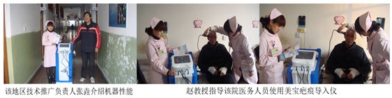 元月中旬剛開完北京總部2012年的工作會議后,中國燒傷瘡瘍研究所副所長趙瑞慶教授了解到山西解放軍282醫(yī)院燒傷科趙興中主任在治療燒傷病人的基礎(chǔ)上,準備在2012年開展治療疤痕項目。在地區(qū)再生醫(yī)學(xué)推廣負責(zé)人張垚的陪同下,乘車趕往駐地。趙教授向該院醫(yī)務(wù)人員認真講解了美寶疤痕儀的機理、操作程序以及美寶疤痕軟膏的功能特點,重點講解了臨床上常見的疤痕分類、疤痕形成的各種因素。采用美寶疤痕儀治療新鮮疤痕,陳舊疤痕的措施。現(xiàn)場親自指導(dǎo)該院醫(yī)務(wù)人員操作,直到完全掌握為止。