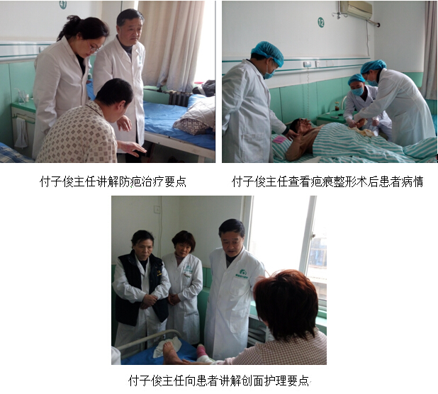 3月12日、13日,付子俊繼續(xù)參與兩科病區(qū)的常規(guī)治療工作,連續(xù)觀察和指導(dǎo)多位重度褥瘡和糖尿病足潰瘍及燒傷患者的創(chuàng)面治療,并對燒傷科近期完成的幾例疤痕整形手術(shù)進行評估,他認為手術(shù)效果很好,對術(shù)后的創(chuàng)面愈合、功能鍛煉,他提出了一些具體要求,并叮囑家屬們應(yīng)做到的日常護理要點,患者家屬們認真聽取了付主任的建議,并對美寶集團燒傷創(chuàng)瘍專家的到來深表感謝。