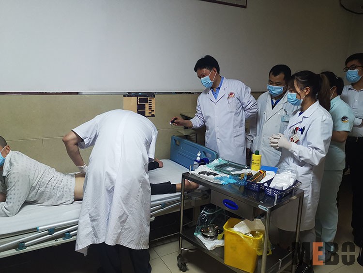 2021年 6月1日,應(yīng)耒陽市中醫(yī)醫(yī)院外一科鄧主任邀請(qǐng),北京榮祥再生醫(yī)學(xué)研究所副所長(zhǎng)、《中國(guó)燒傷創(chuàng)瘍雜志》編委金黨軍到科室會(huì)診2例慢創(chuàng)患者。金黨軍主任親自示范再生醫(yī)療技術(shù)換藥流程,并與科室醫(yī)護(hù)人員討論治療過程中的注意事項(xiàng),得到了科室醫(yī)護(hù)人員和患者家屬的稱贊。再生醫(yī)療技術(shù)是各醫(yī)療單位皆適用的經(jīng)濟(jì)、有效、易使用的國(guó)際最先進(jìn)的治療創(chuàng)面的技術(shù),是中西醫(yī)結(jié)合治療方案的典范,它的大力推廣將極大造福廣大燒傷及慢創(chuàng)患者。